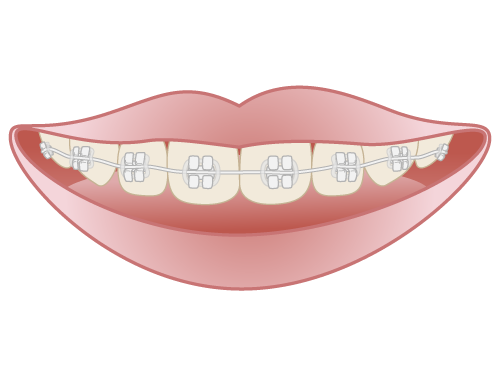 目立たない矯正治療では、ブラケットが歯の色に近いセラミック製となっており、外部からほとんど目立ちません。さらに、ワイヤーも肌の色や歯の色に調和するゴールド色や乳白色のコーティングが施されています。このような装置は、歯を移動させるためのワイヤーをブラケットに結びつける必要がなく、口唇や粘膜への接触も軽減されています。